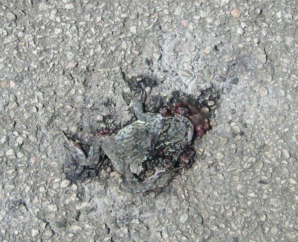 Questa è la Rospina, l'unica erba allucinogena dai comprovati effetti presente a Rozzampia. Cresce in mezzo all'asfalto ed è particolare perché mescolata con altre erbe NON allucinogene, le fa diventare allucinogene. A prima vista potrebbe sembrare un rospo spiaccicato sulla strada, ma non è assolutamente così: un vero rospo spiaccicato sulla strada è quello della prossima foto... |